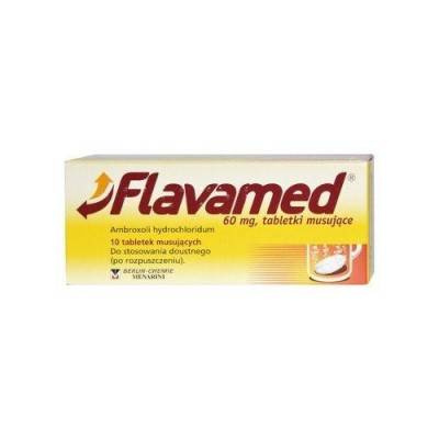 Działania niepożądane: Jak każdy le, Flavamed może powodować działania niepożądane, chociaż nie u każdego one wystąpią. Zaburzenia żołądka i jelit. Niezbyt często: nudności, bóle żołądka, wymioty. Zaburzenia skóry i tkanki podskórnej. Bardzo rzadko: ciężkie reakcje skórne takie jak zespół Lyella oraz zespół Stevensa-Johnsona. Zaburzenia ogólne i stany w miejscu podania. Niezbyt często: reakcje nadwrażliwości, takie jak wysypka skórna, obrzęk twarzy, zaburzenia oddechowe, świąd, gorączka. Bardzo rzadko: ciężkie reakcje alergiczne w tym wstrząs anafilaktyczny. Jeśli wystąpi jedno lub więcej wymienionych powyżej działań niepożądanych należy natychmiast przerwać stosowanie leku Flavamed.