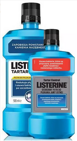 - Listerine Tartar Control to preparat, który zapobiega powstawaniu i redukuje płytkę nazębną która jest główną przyczyna chorób dziąseł, polecany szczególnie osobom z problemem osadzającego się kamienia nazębnego.