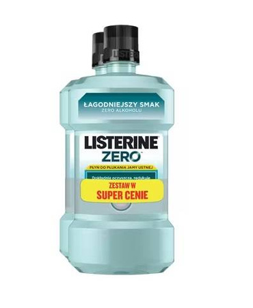 W skład zestawu promocyjnego wchodzą dwie sztuki Płynu do płukania jamy ustnej Listerine Zero 500 ml.