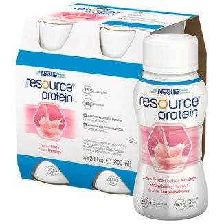- Resource Protein to kompletna pod względem odżywczym, wysokobiałkowa dieta w płynie. Żywność specjalnego przeznaczenia medycznego, do postępowania dietetycznego w stanach niedożywienia i/lub w przypadku ryzyka niedożywienia, któremu może towarzyszyć zwięk