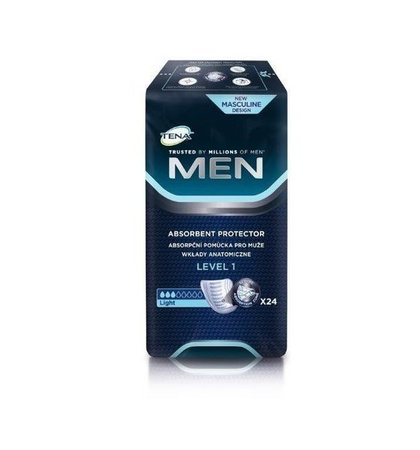 Wkłady TENA Men są tak dyskretne, że nikt nie zauważy, że je nosisz. Unikatowy rdzeń Lock Away Core™ zawiera mikroabsorbenty, które wiążą wilgoć z dala od ciała. Dodatkową ochronę zapewnia system Odour Control™ gwarantujący poczucie świeżości. Model Level 1 najlepiej nadaje się dla mężczyzn ze sporadycznymi objawami inkontynencji (kilka kropel).