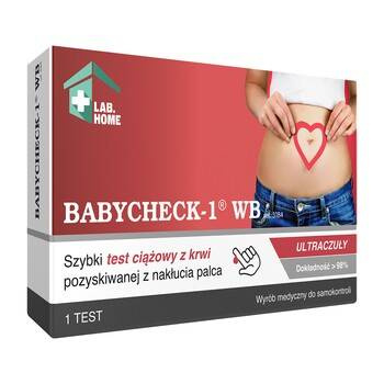 Wyrób medyczny Babycheck-1 WB to szybki test ciążowy z krwi pozyskiwanej z nakłucia palca. W trakcie ciąży hormon hCG w pierwszej kolejności uwalnia się do krwiobiegu, a dopiero później do moczu. W przypadku wczesnej ciąży, badanie z krwi pozwala uzyskać znacznie mniej wyników fałszywie ujemnych, w porównaniu do testów hCG z moczu. Testy ciążowe z krwi mają większą dokładność, dzięki czemu mają zastosowanie w laboratoriach medycznych oraz szpitalach. Test można wykonać w dowolnym momencie dnia. Jeżeli stężenie hCG w krwi jest równe lub przekracza 25 IU/L, test wskaże wynik pozytywny, niezależnie od pory dnia, w której jest przeprowadzane badanie.