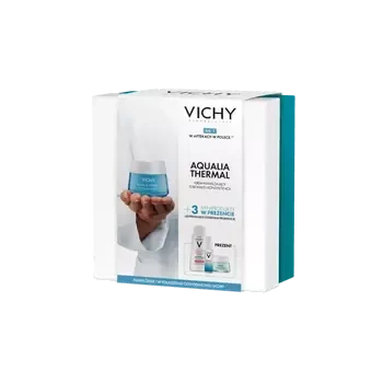 - Vichy Xmas 2022 Aqualia Thermal zestaw pielęgnacyjny do twarzy, 100 + 50 + 15 + 10 ml zawiera kosmetyki z wodą termalną. Krem nawilżający na dzień i na noc, płyn micelarny i serum do twarzy pozwalają na stworzenie kompleksowej rutyny pielęgnacyjnej.