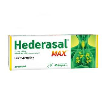 - Hederasal MAX to lek roślinny, który stosuje się w przypadku produktywnego kaszlu mokrego.