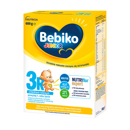 - Bebiko Junior 3R Nutriflor Expert to mleko modyfikowane z kleikiem ryżowym przeznaczone dla dzieci powyżej 1. roku życia.